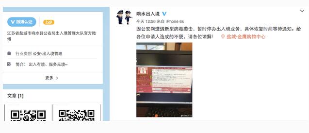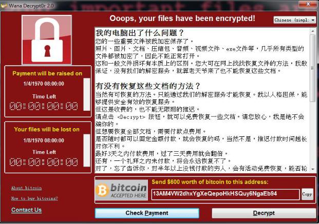 由于一(yī)帶一(yī)路(lù)高(gāo)峰論壇明(míng)天在北(běi)京召開(kāi),這(zhè)是(shì)今年(nián)中國(guó)最大(dà)的(de)外(wài≈)交事(shì)件(jiàn),29個(gè)國(guó)家(jiā)的(de)國(guó)家(jiā)元首或政府首腦(nǎo)以及來(lái)自(zì)130多(duō)個(gè)國(guó)家(jiā)的(de)1500名代表将出席。恰在此時(shí),基于SMB文(wén)件(jiàn)共享傳播的(de)蠕蟲病毒攻擊開(kāi)始了(le)大(dà)規模傳播,5月(yuè)12日(rì)晚上(shàng)20時(shí)左右,全球爆發大(dà)規模勒索軟件(jiàn)感染事(shì)件(jiàn),用(yòng)戶隻要(yào)開(k∏āi)機(jī)上(shàng)網就(jiù)可(kě)被攻擊。五個(gè)小(xiǎo)時(shí)內(nèi),包括英國(guó)、俄羅斯、整個(gè×)歐洲以及國(guó)內(nèi)多(duō)個(gè)高(gāo)校(xiào)校(xiào)內(n≥èi)網、大(dà)型企業(yè)內(nèi)網和(hé)政府機(jī)構專網中招,被勒索支付高(gāo)額贖金(jīn)(有(yǒu)的(de)需要(yào)比特币)才±能(néng)解密恢複文(wén)件(jiàn),這(zhè)場(chǎng)攻擊甚至造成了(le)教學系統癱瘓,包括校(xiào)園一(yī)卡通(tōng)系統。