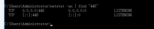 2、輸入命令:netstat -an | find “445” 回車(chē)