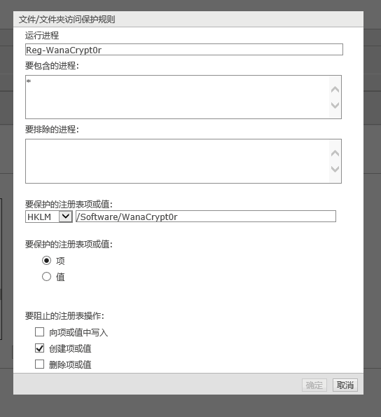 2. 新增自(zì)定義規則“Reg-WanaCrypt0r”“file-WanaCrypt0r”